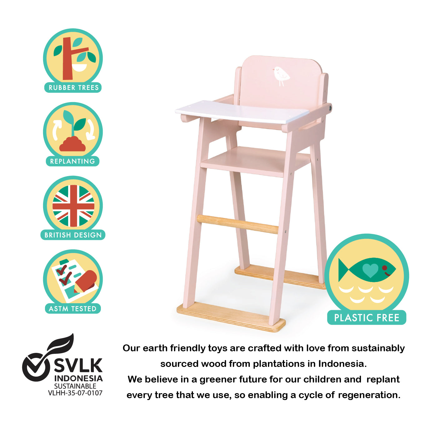 SVLK supports reforestation, and protects biodiversity by replanting every tree used to make our toys.